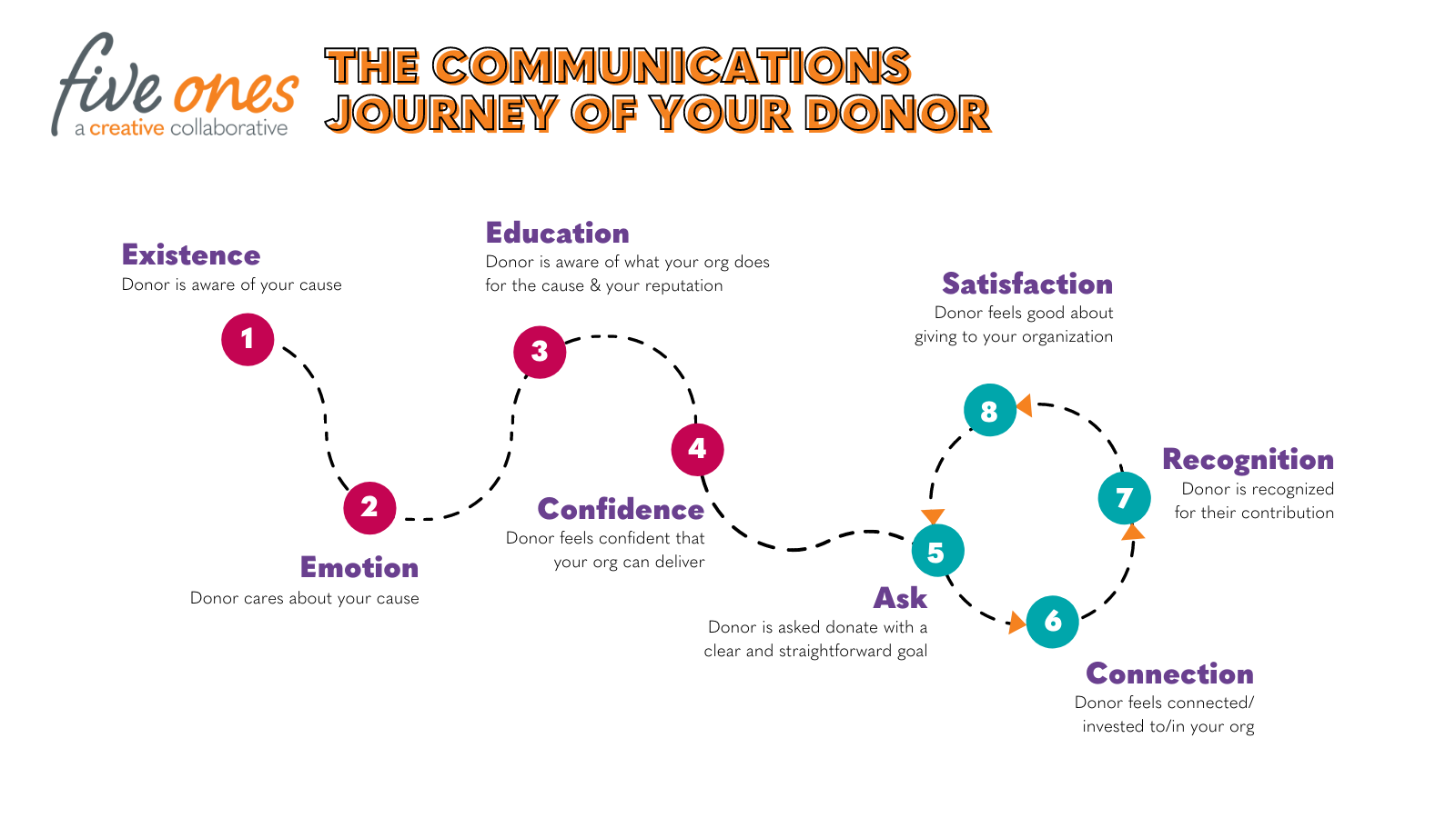 It’s a fine balance, engaging and asking, but one that can be found by ensuring you plan your messaging accordingly.  Want the digital version of this graphic behind me? Go to fiveones.com/journey to grab the JPG.